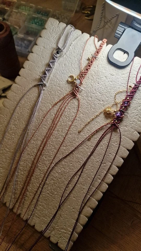 Questo gioiello è realizzato con l’antica tecnica di annodatura artigianale Macramè e un filo di alta qualità rivestito in cera vegetale, che conferisce resistenza e mantiene vivido il colore oltre che ad avere un vestibilità comoda.